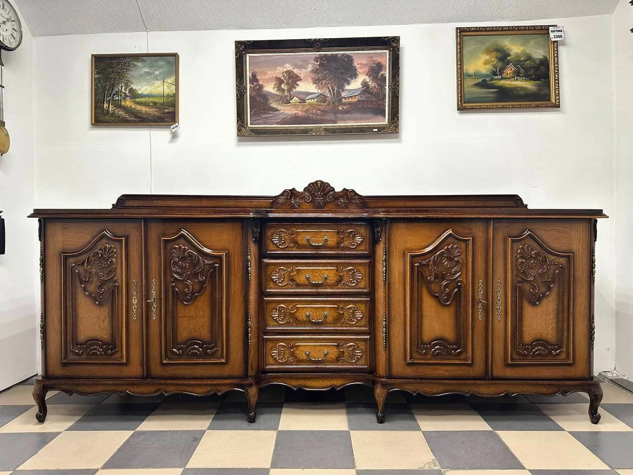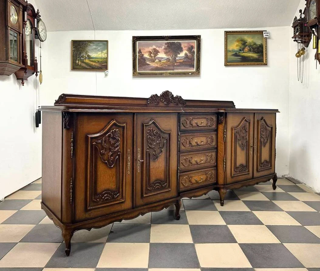 Розкішний різьблений дерев’яний буфет-комод у французькому класичному стилі з центральними шухлядами