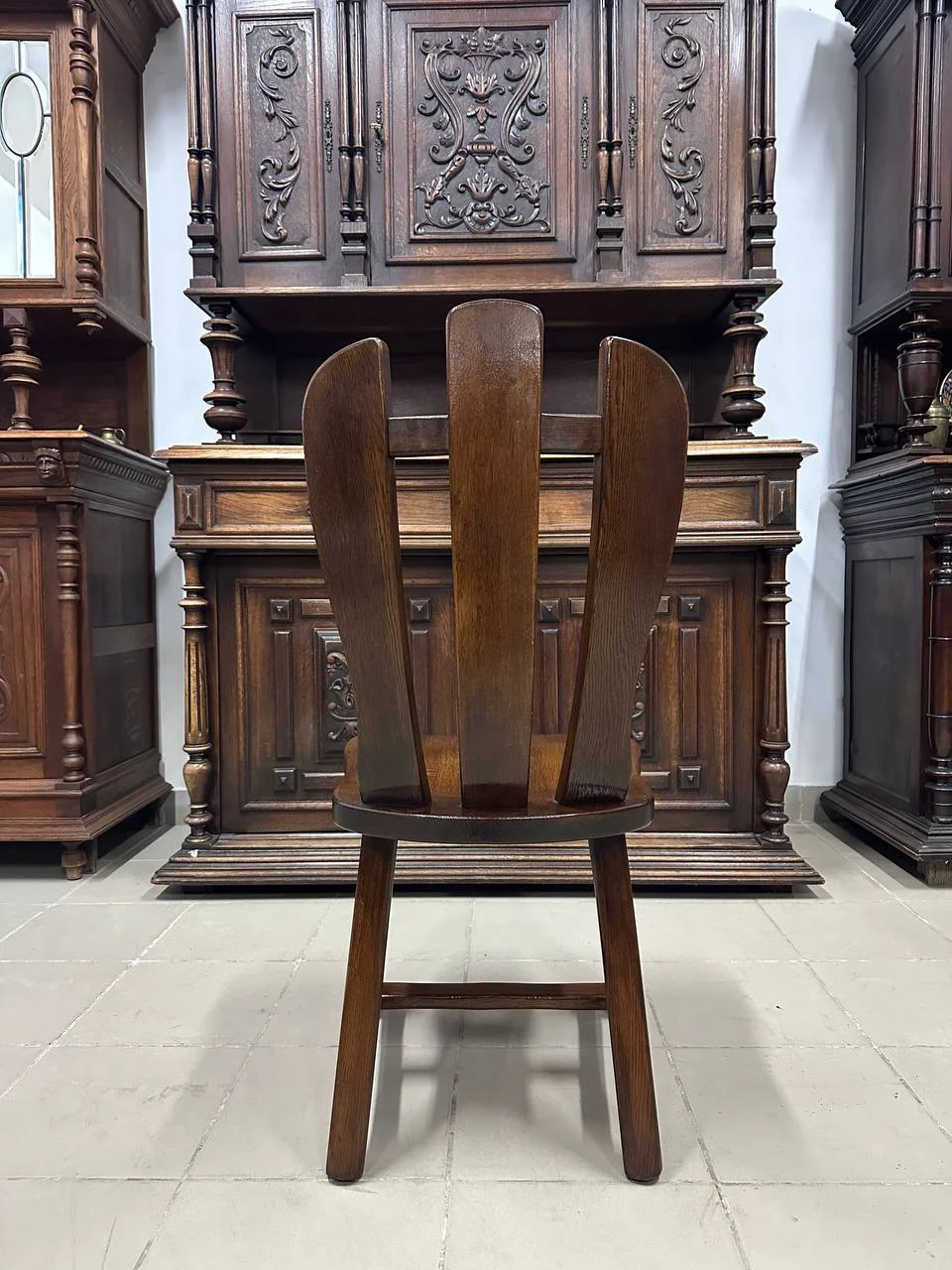 Кожен стілець відчувається як окремий предмет з душею — масивний, але не громіздкий, строгий, але не холодний. Темний медовий відтінок дуба з віковими нюансами робить їх універсальними для різних епох інтер’єру — від сільського будинку до міської класичної оселі.