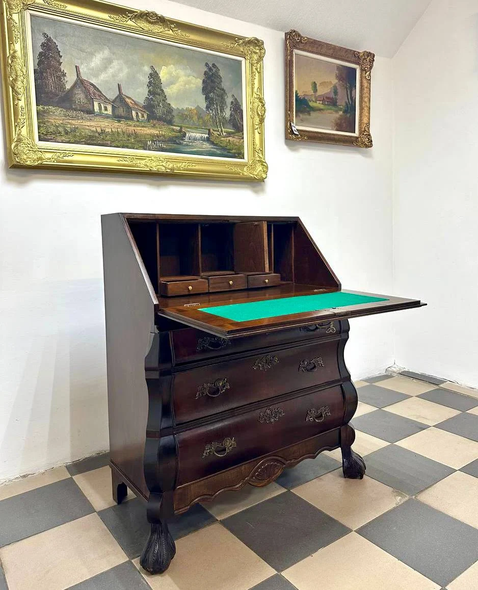 Це ідеальне поєднання комода для зберігання та прихованого робочого місця. Він поєднує в собі пишну естетику минулих епох з практичною функціональністю, необхідною в сучасному домі. Цей секретер створений для тих, хто не боїться сміливих рішень та цінує предмети з історією та характером.